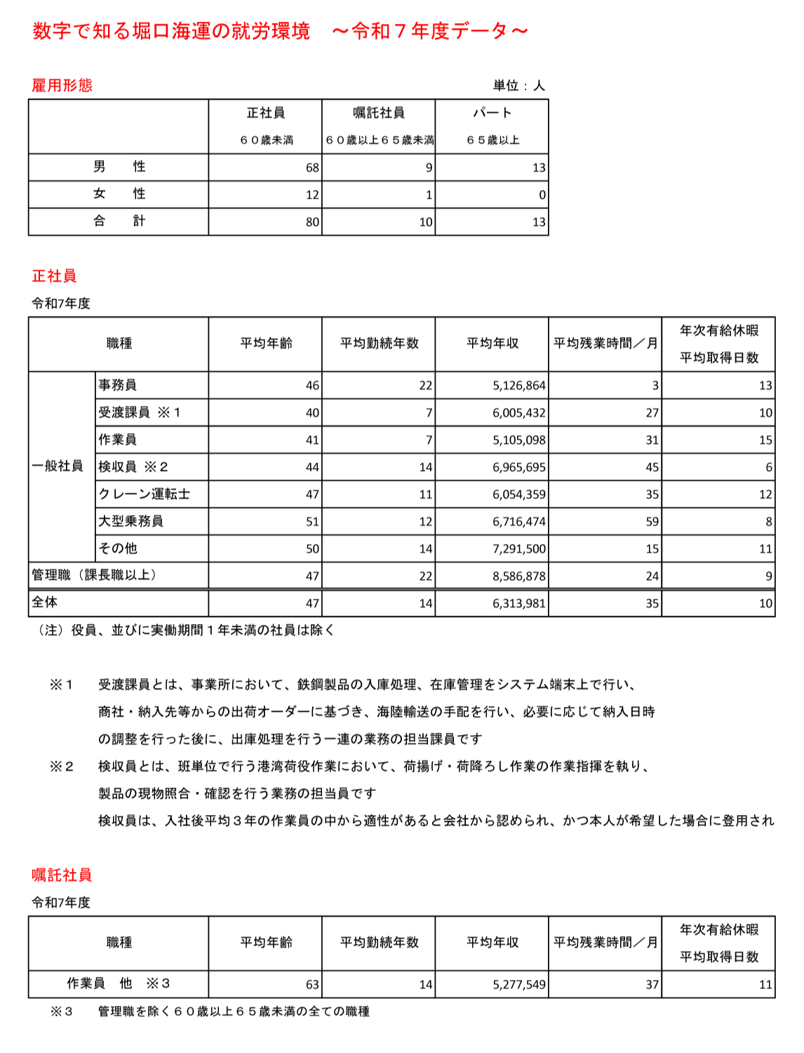 数字で知る堀口海運の就労環境~令和7年度データ~>>>